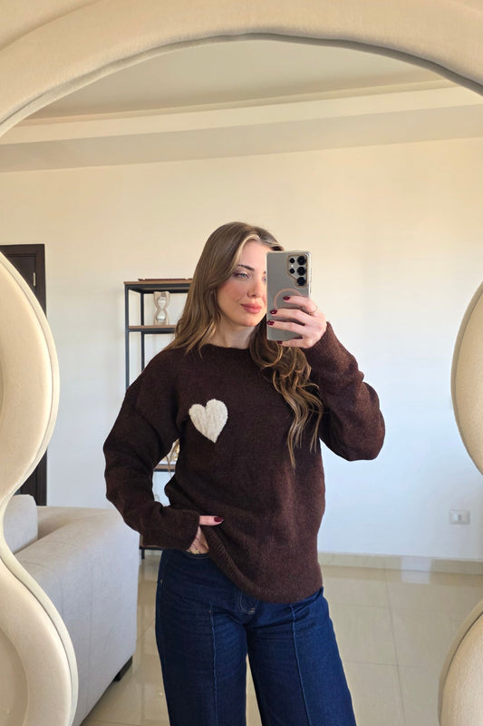 Amelie Heart Knit - Cocoa