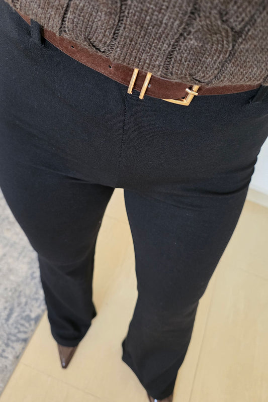 Talia Belted Flare Leggings – Black