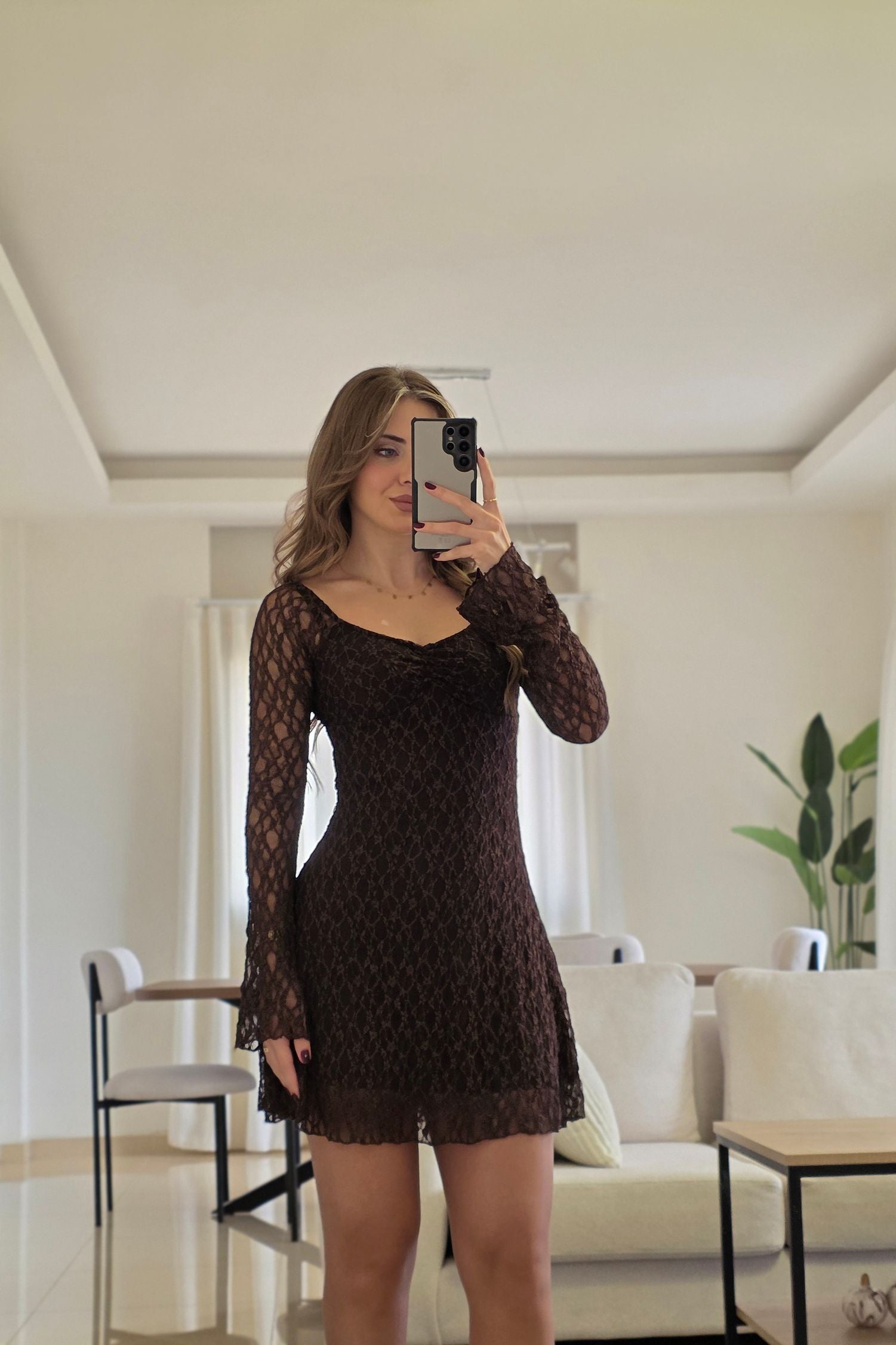 True to size and perfect for elevated occasions. The model is 160 cm and 53 kg wearing size S.